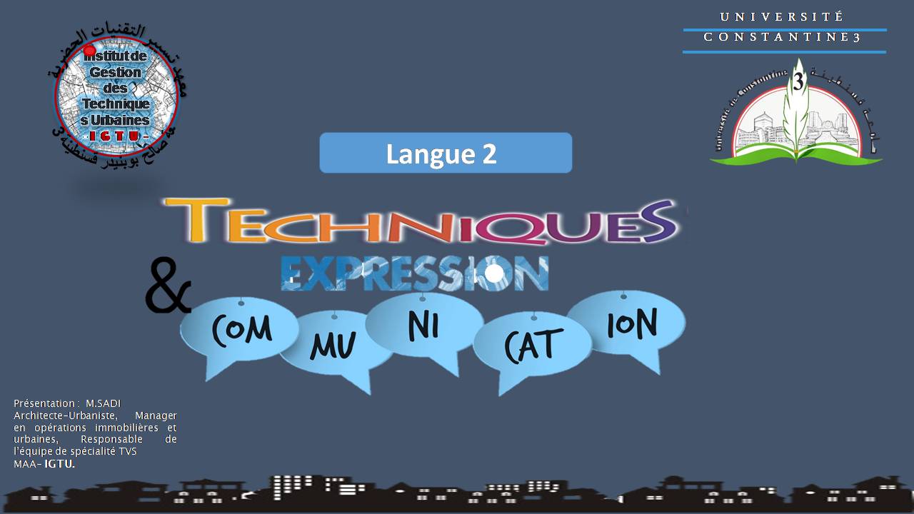 L’objectif assigné pour cette matière est d’améliorer les capacités d'expression, de communication, de relation et d'initiative des apprenants en milieu universitaire et plus-tard en milieu profesionnel .